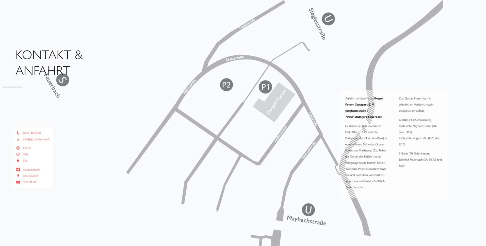 Um den Gospel Forum gibt es ausreichend kostenfreie Parkplätze.